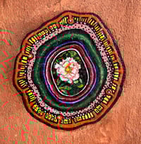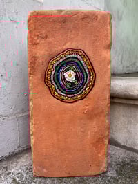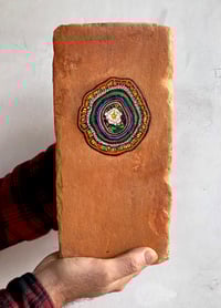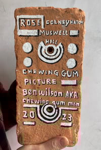 Discarded chewing gum from the street, on found and renovated brick. Painted on acrylic enamel and burnished with a blow torch. A miniature painting of a Rose from London, painted in Scotland at a time when I was exhibiting in Pittenweem in the East Neuk of Fife .